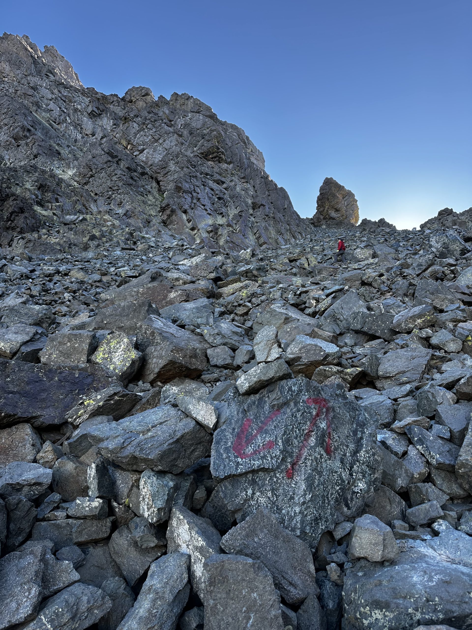 Koyulmuş babaları takip ederek zirveye doğru yürümeye başladık patika ilk başlarda rahattı ama dağa doğru yaklaştıkça çarşak dediğimiz parçalanmış kayalar tehlikeli ve zorlu olmaya başlamıştı.Her an bir tanesi yukarıdan hızla düşük bizi yaralayabilir yada bir ters bir basışla kendimizi sakatlayabilirdik.Zirve yapmayı planlamadığımız için kask ve teknik malzeme almadık yanımıza.Ama emniyet tedbirlerine mütemadiyen uymaya çalıştık.
