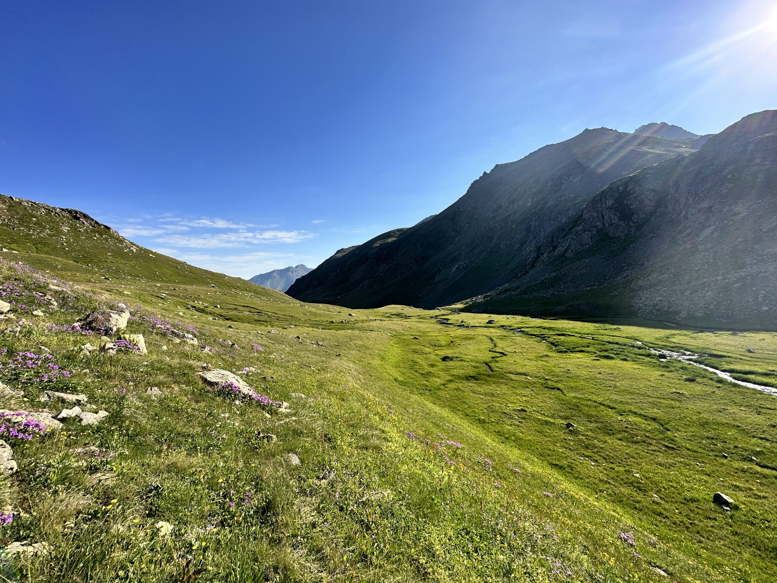 Sabah gecenin de sıcak olması sebebiyle erkenden kendimizi çadırın dışına attık ,hızlı bir kahvaltıdan sonra çantalarımızı sırtlayıp Çiçekli Yaylaya doğru alçalmaya başladık.Patika enfes bir manzaraya sahipti , aşağıya indikçe yukarıda ki göllerden akan kaynak suları birleşerek dereleri oluşturmaya başlamış , derelerin seside manzarayla beraber güzel görüntüler oluşturuyordu.